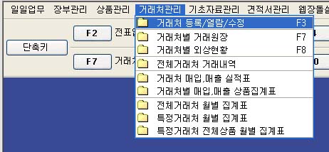 | ¢Ñ '°Å·¡Ã³°ü¸®' - '°Å·¡Ã³ µî·Ï/¿¶÷/¼öÁ¤' À» ¼±ÅÃÇÕ´Ï´Ù. |